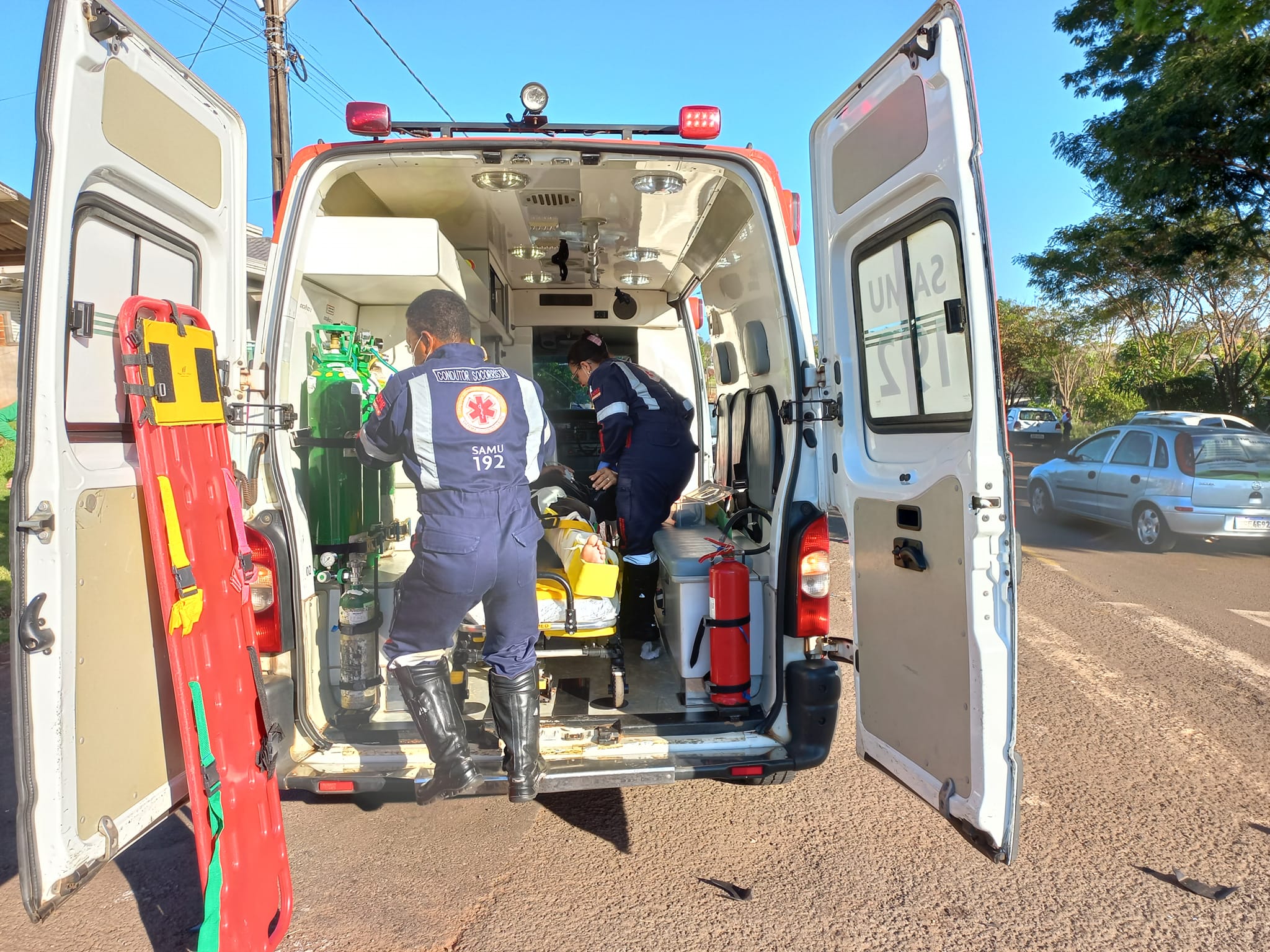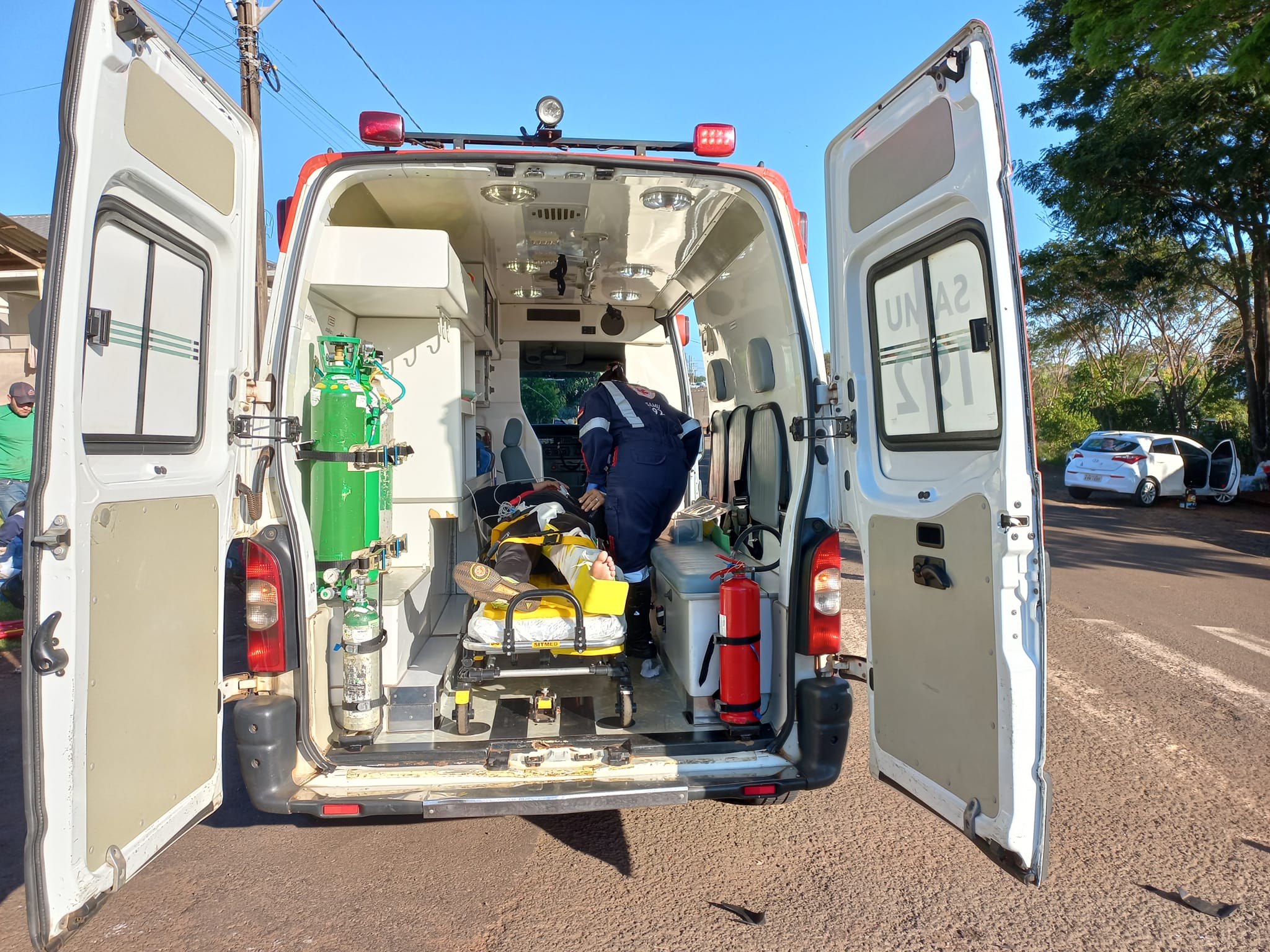 A condutora do VW Gol, 35 anos, não sofreu ferimentos. O condutor da Honda CB 300, de 29 anos, sofreu ferimentos na perna esquerda. Já condutora de 36 anos da Honda Biz, sofreu ferimentos no pé esquerdo. Os feridos foram atendidos pelo Samu e encaminhados para atendimento médico a Casa de Saúde de Santa Izabel do Oeste.