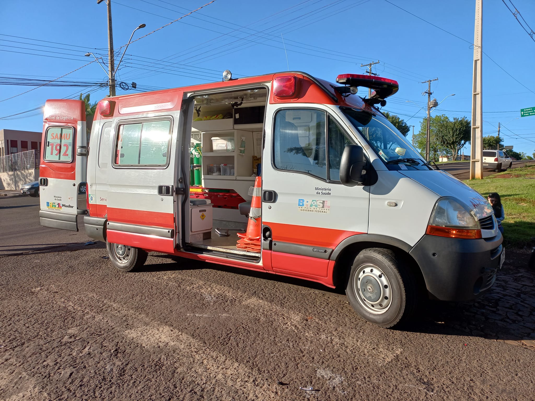 Por volta das 07h00, desta terça-feira, 25/10, ocorreu um acidente no cruzamento da Av. Das Peróbas com a Rua Angico. Se envolveram no acidente um VW Gol, placas de Santa Izabel do Oeste e duas motos, uma Honda CB 300 e uma Honda Biz 125, ambas de Santa Izabel do Oeste.