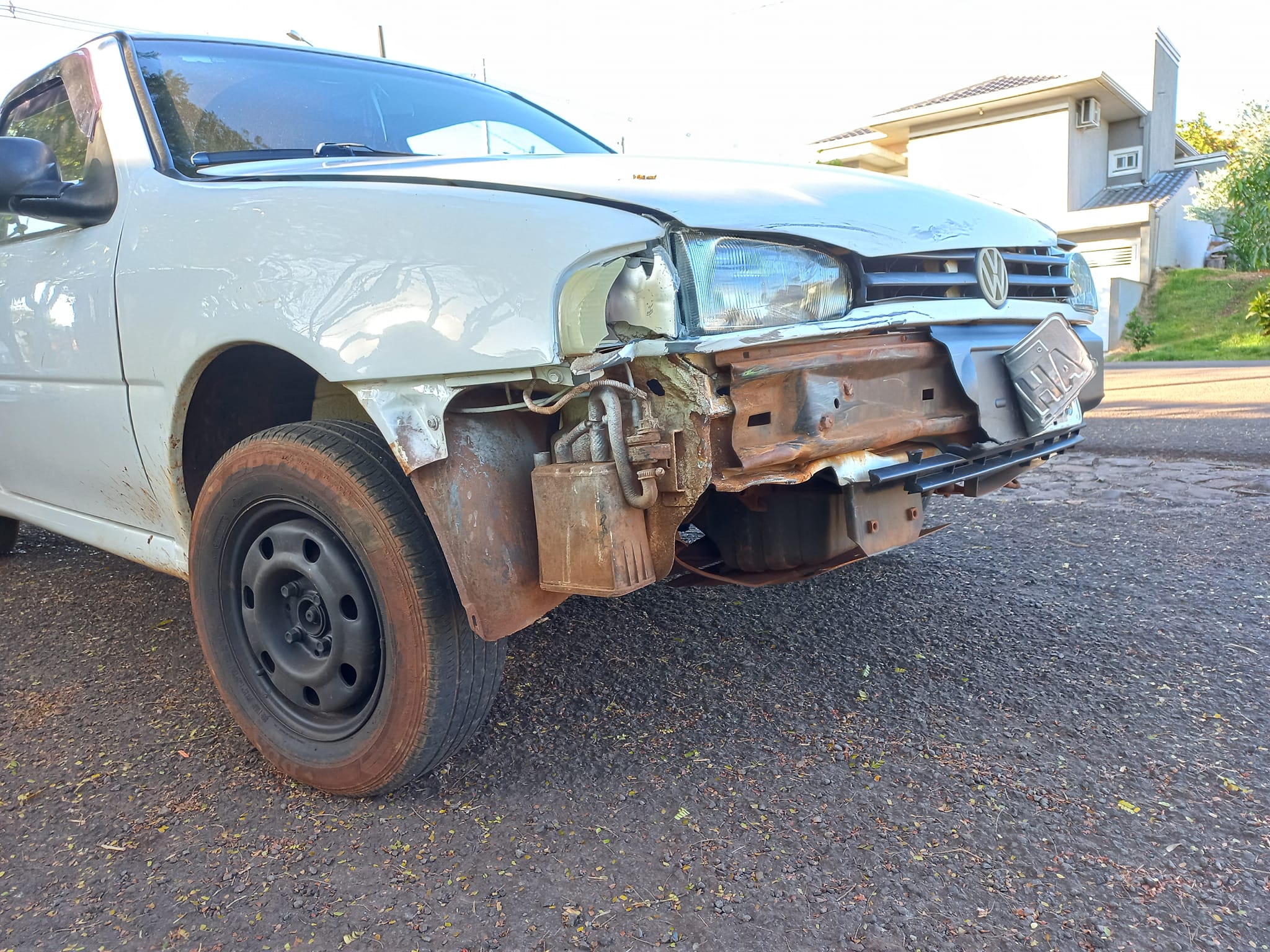 As motos não tiveram danos. Já o veículo Gol, teve danos na parte da frente.