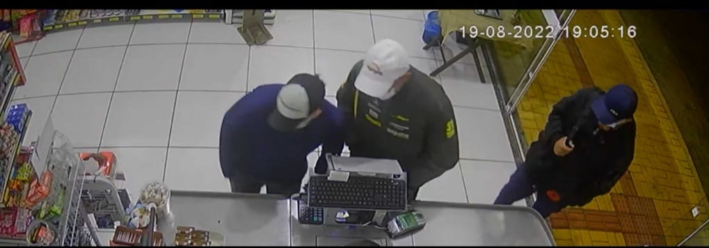 Três elementos, todos usando máscara, um deles armado, praticaram assalto no início da noite de sexta-feira (19) em um mercado no centro de Salto do Lontra.