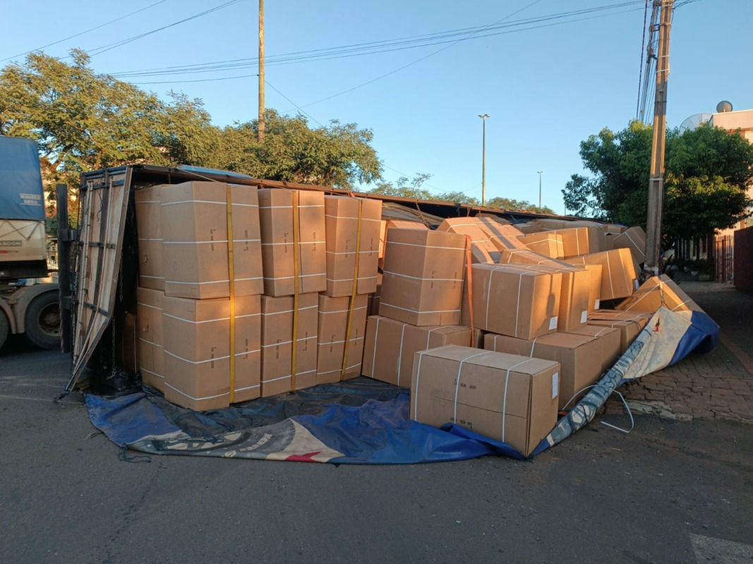 Ele não sofreu ferimentos e afirmou que a carga que foi carregada em Venâncio Aires-RS teria como destino o Paraguai e possui seguro, porém sua carreta não.