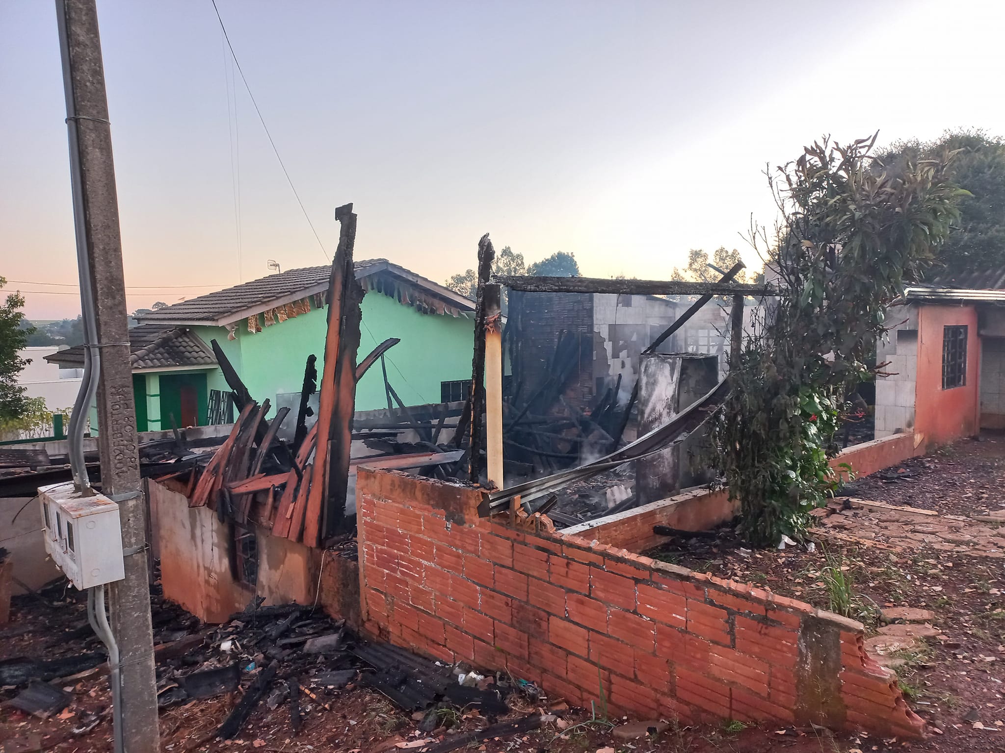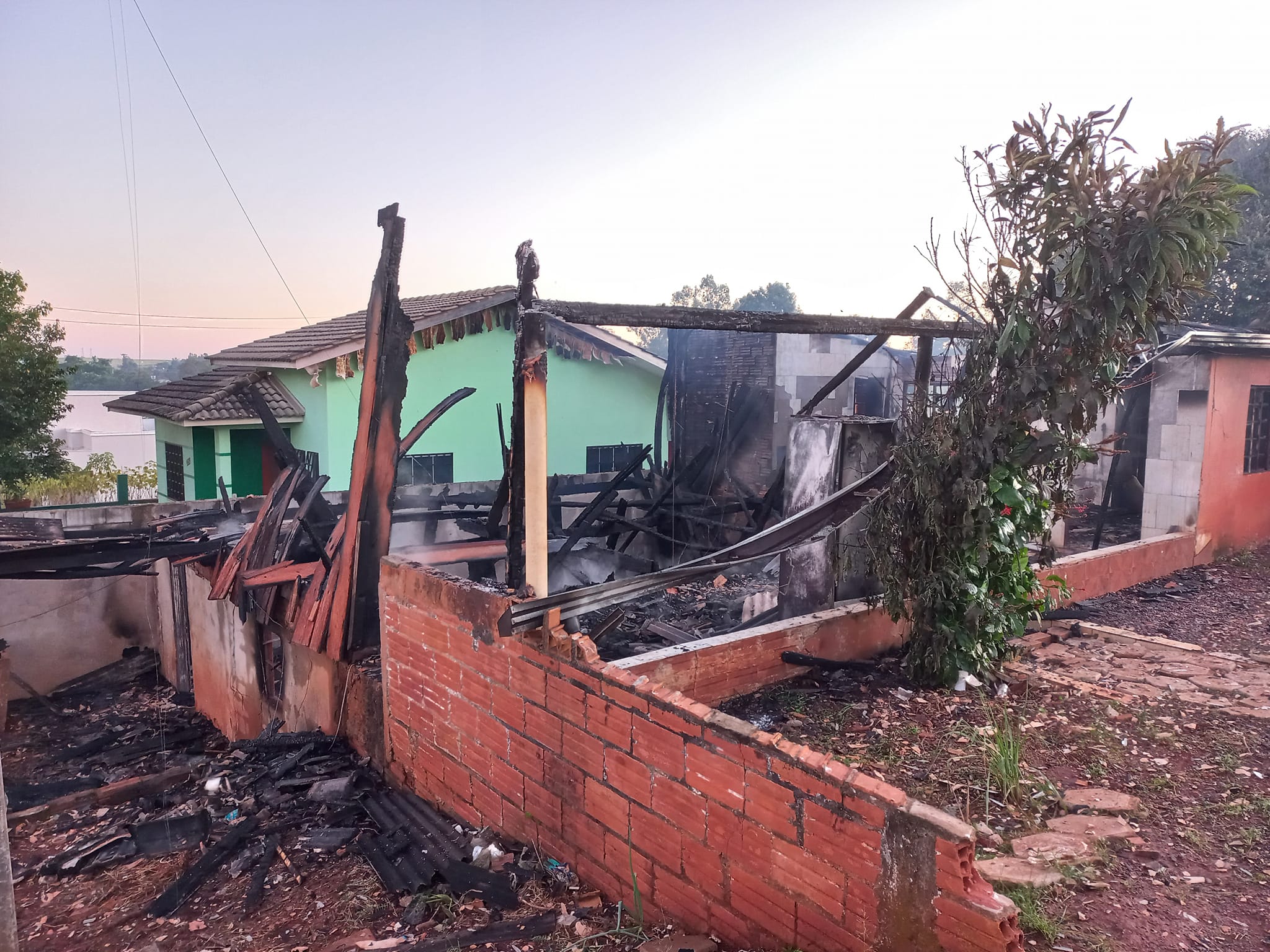 Casa de madeira é consumida pelo fogo em Santa Izabel do Oeste