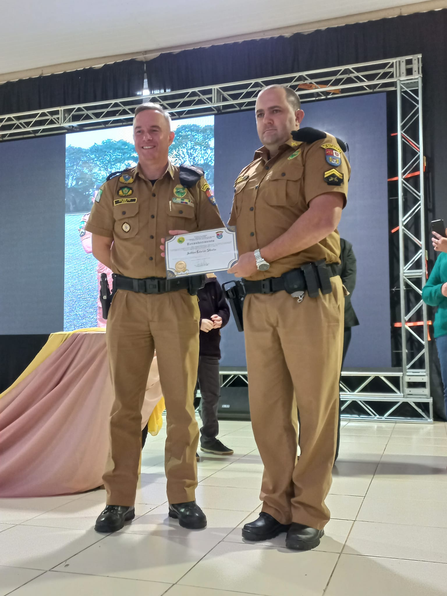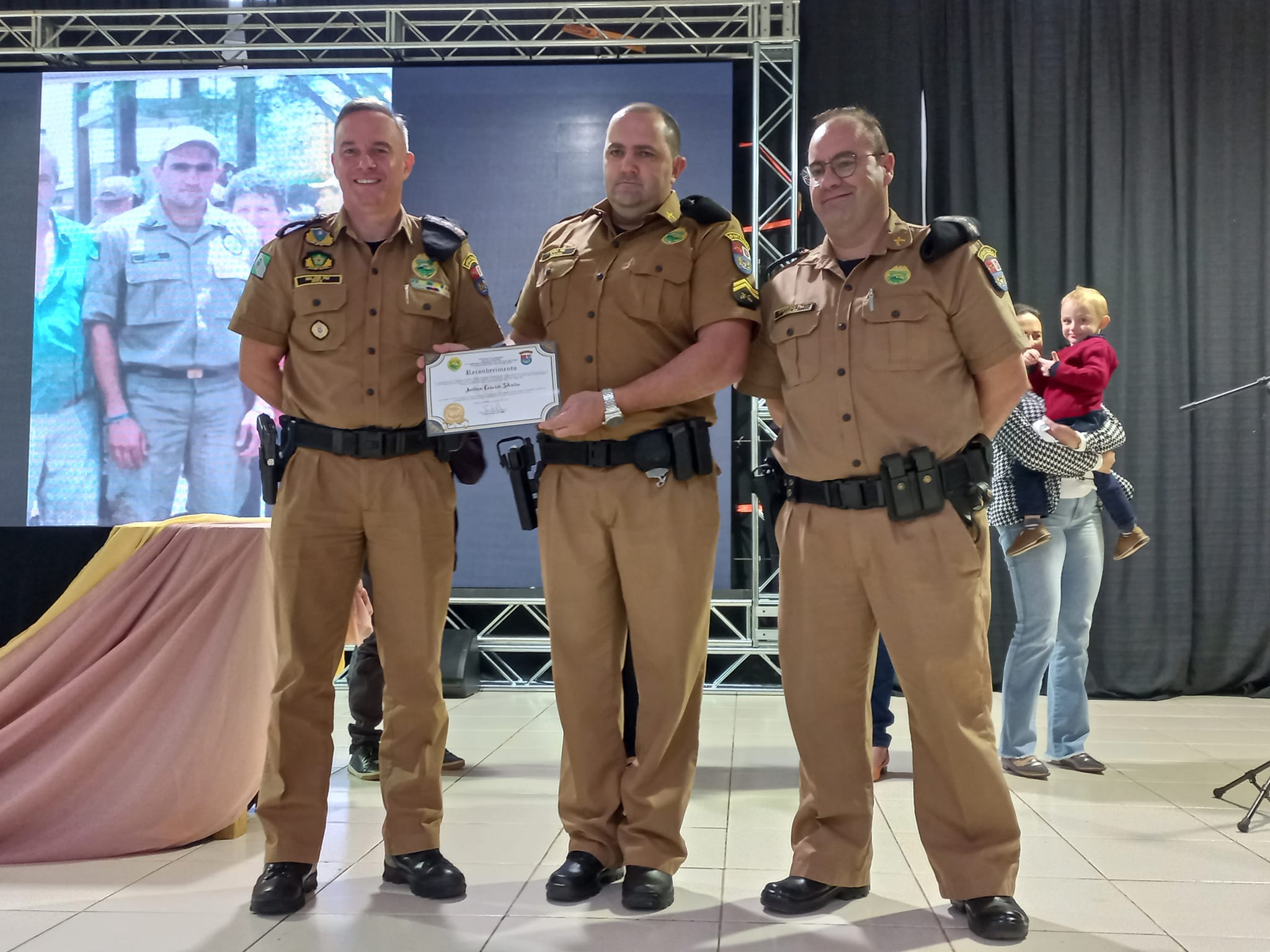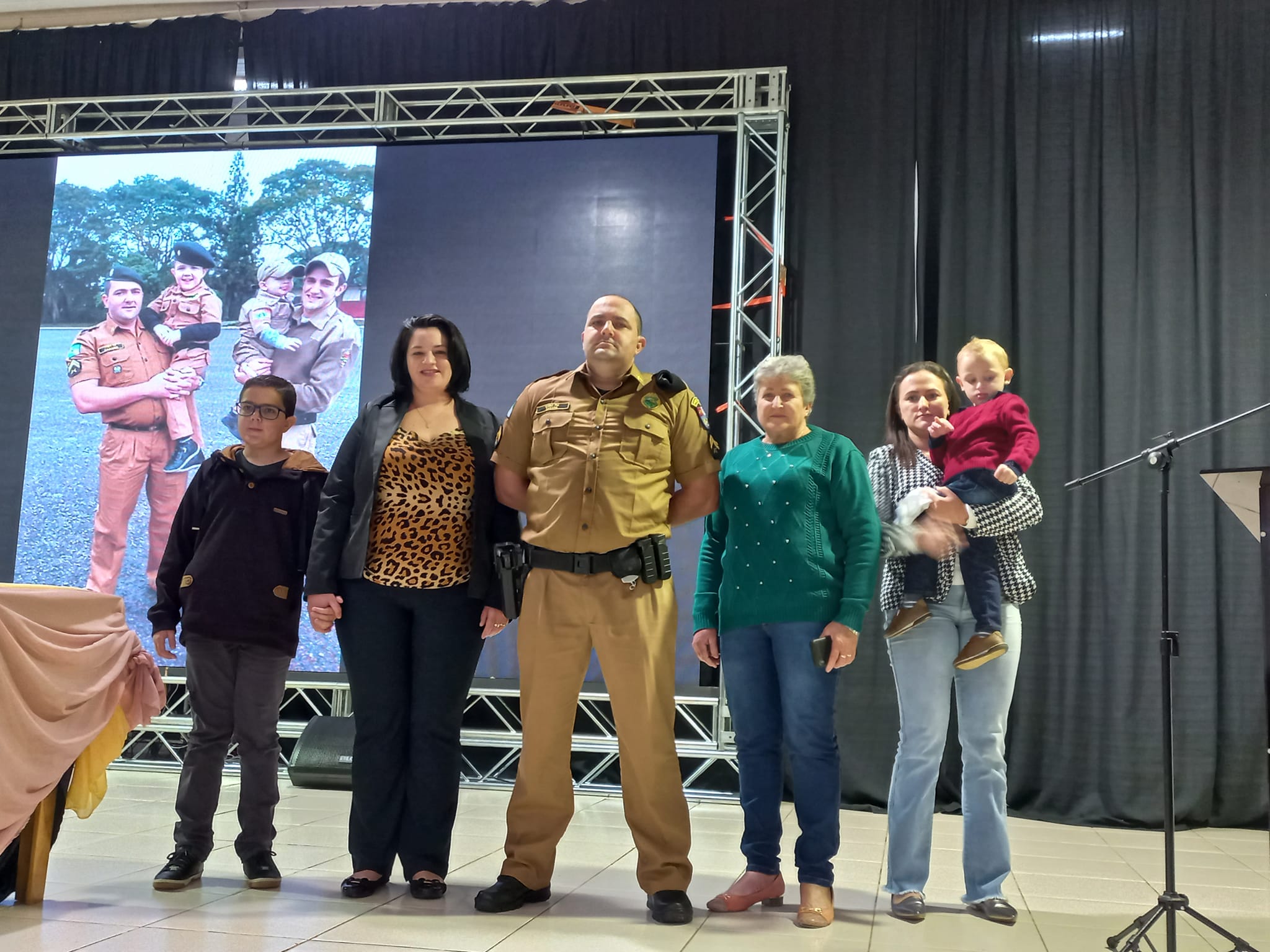 A cerimônia contou com a presença do Comandante do 21º Batalhão de Polícia Militar, Maj. Rogério Gomes Pitz, e Comandante da 4ª Companhia, Capitão Emilio, além do Prefeito Jean Catto, vice-prefeito Moacir Marostica, vereadores, secretários municipais, Delegado da Polícia Civil da Comarca de Realeza, Dr. Regis Francisco Palombo, padre, pastores, lideranças locais e regionais, bem como amigos e colegas de farda do homenageado.