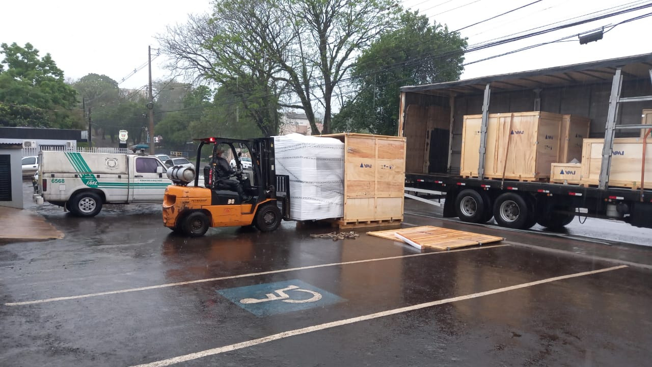 Chegou nesta quinta-feira (05) em Francisco Beltrão o equipamento Flatscan que será instalado em um espaço ao lado do IML, construído especialmente para esse fim.