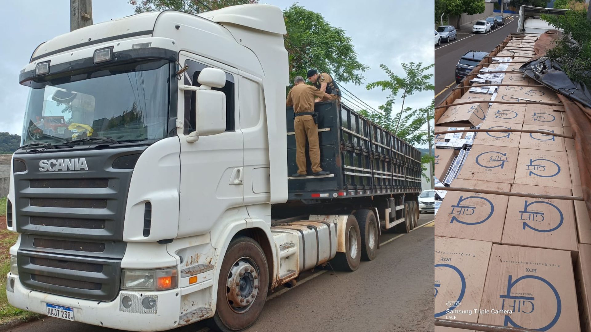 Francisco Beltrão: Carreta carregada com cigarros contrabandeados é apreendida
