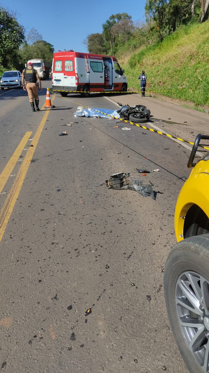 Mulher morre em grave acidente entre moto e ônibus na PR-280