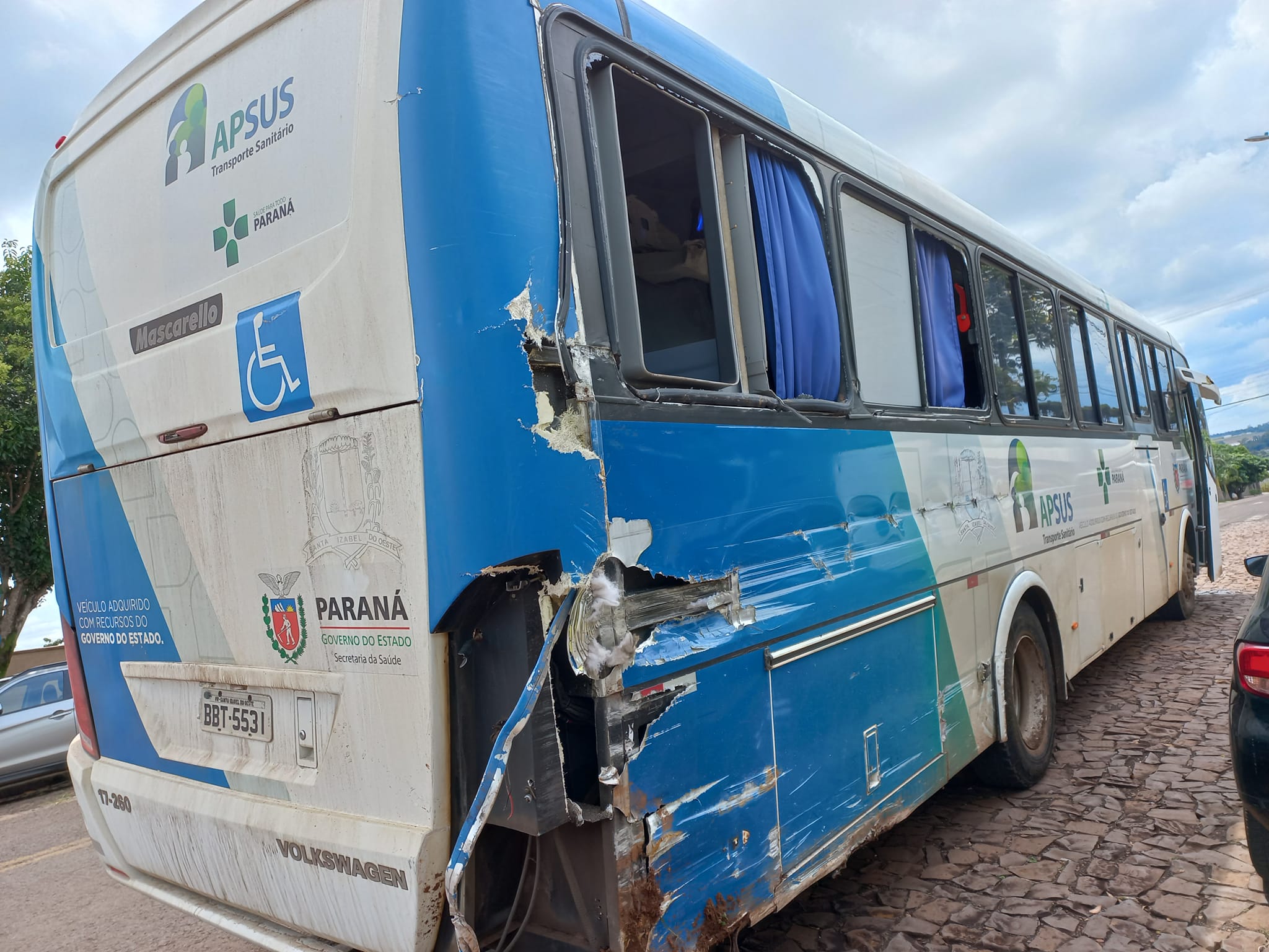 Ônibus da Secretaria de Saúde sai da pista e bate em barranco