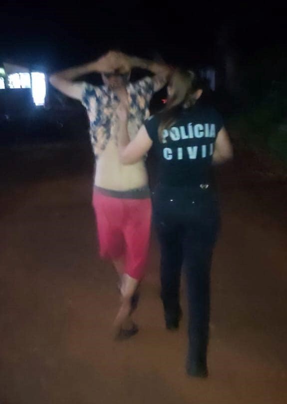 O investigado, tão logo verificou a chegada da equipe policial em sua residência empreendeu fuga, tendo sido localizado em uma mata próxima.