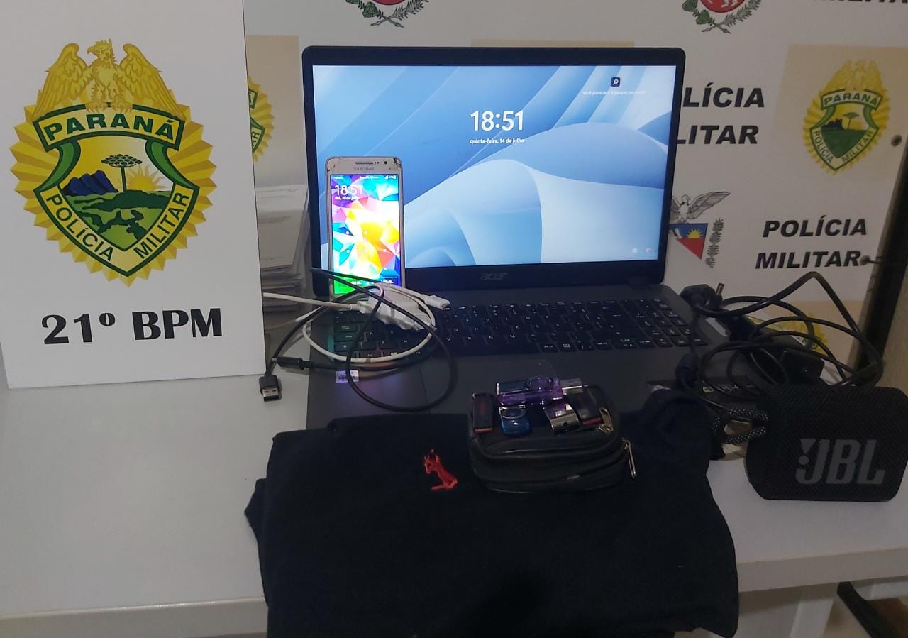 Na tarde desta quinta-feira (14) a equipe da Policia Militar de Realeza recebeu denúncia de que um masculino estaria tentando revender alguns eletroeletrônicos e que estes seriam produtos de furto.