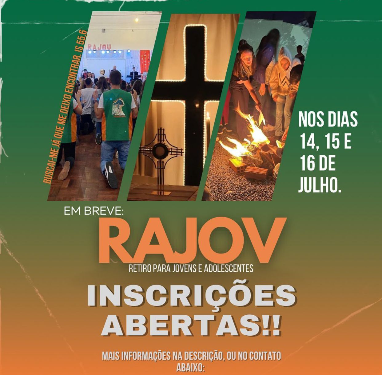 As inscrições poderão ser feitas online no Instagram do @rajov_sio, ou com a ficha física que já está disponível no Colégio Guilherme de Almeida e na Casa Paroquial.