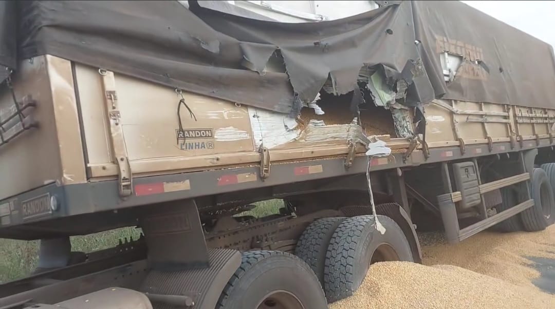 Na outra carreta que estava carregada de milho, uma das gaiotas acabou tombando e derramando a carga na pista. O motorista não teve ferimentos.