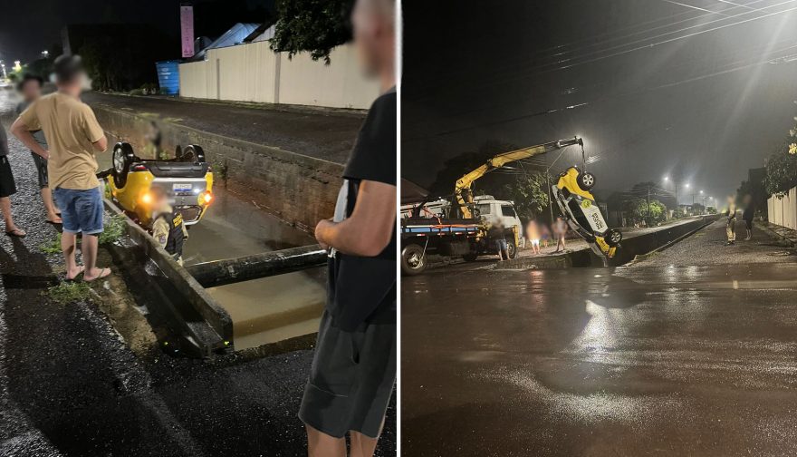 Realeza: Viatura da PM capota e cai em córrego durante perseguição