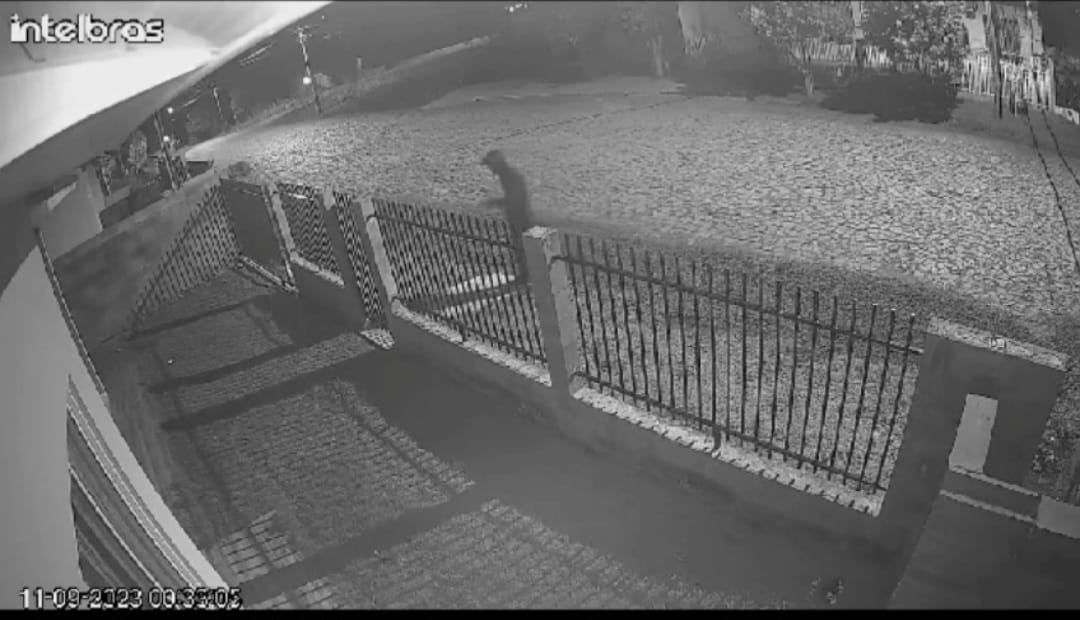 Câmeras de segurança de moradores do bairro Inovação em Santa Izabel do Oeste, flagrou um meliante forçando o portão pequeno de uma casa, o mesmo estava trancado, então ele se dirigiu ao portão maior conseguindo abrir e adentrar no lote, tendo acesso a residência.