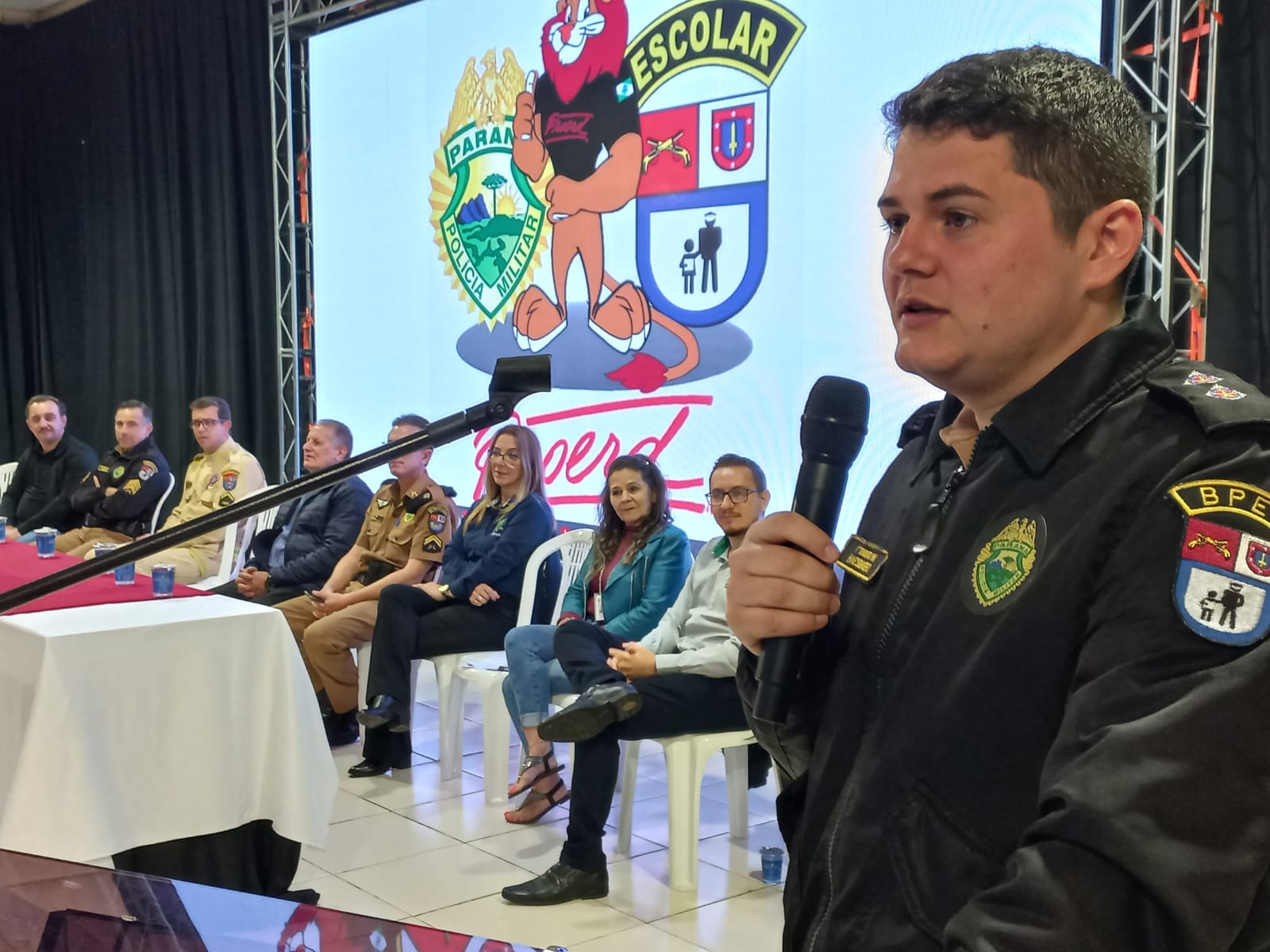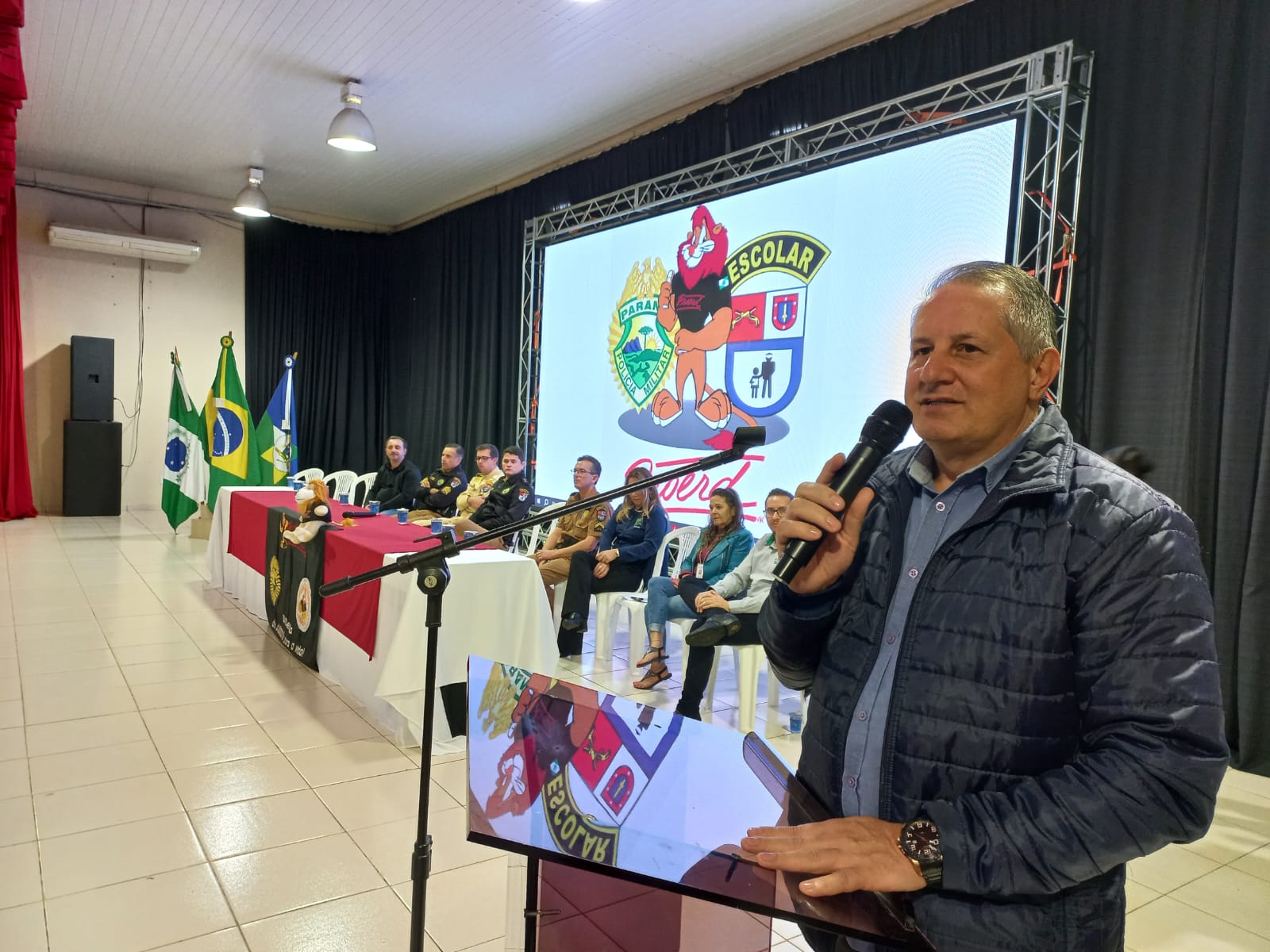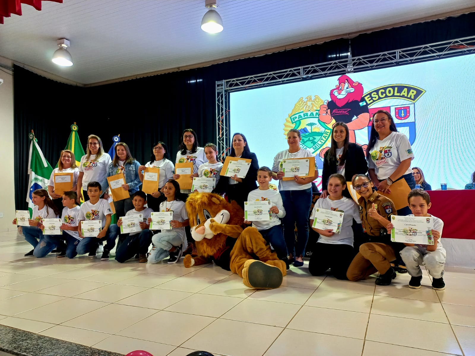 Aconteceu na manhã desta terça-feira (30/05), no Centro Cultural Monsenhor Cestílio José Miotto em Santa Izabel do Oeste, a formatura do Proerd 2023, para 140 alunos dos 5º anos das escolas da Rede Municipal de Ensino, da cidade e do interior do Município e da Rede Particular. O Centro Cultural ficou completamente lotado com a presença dos alunos, pais, autoridades, secretários e professores.