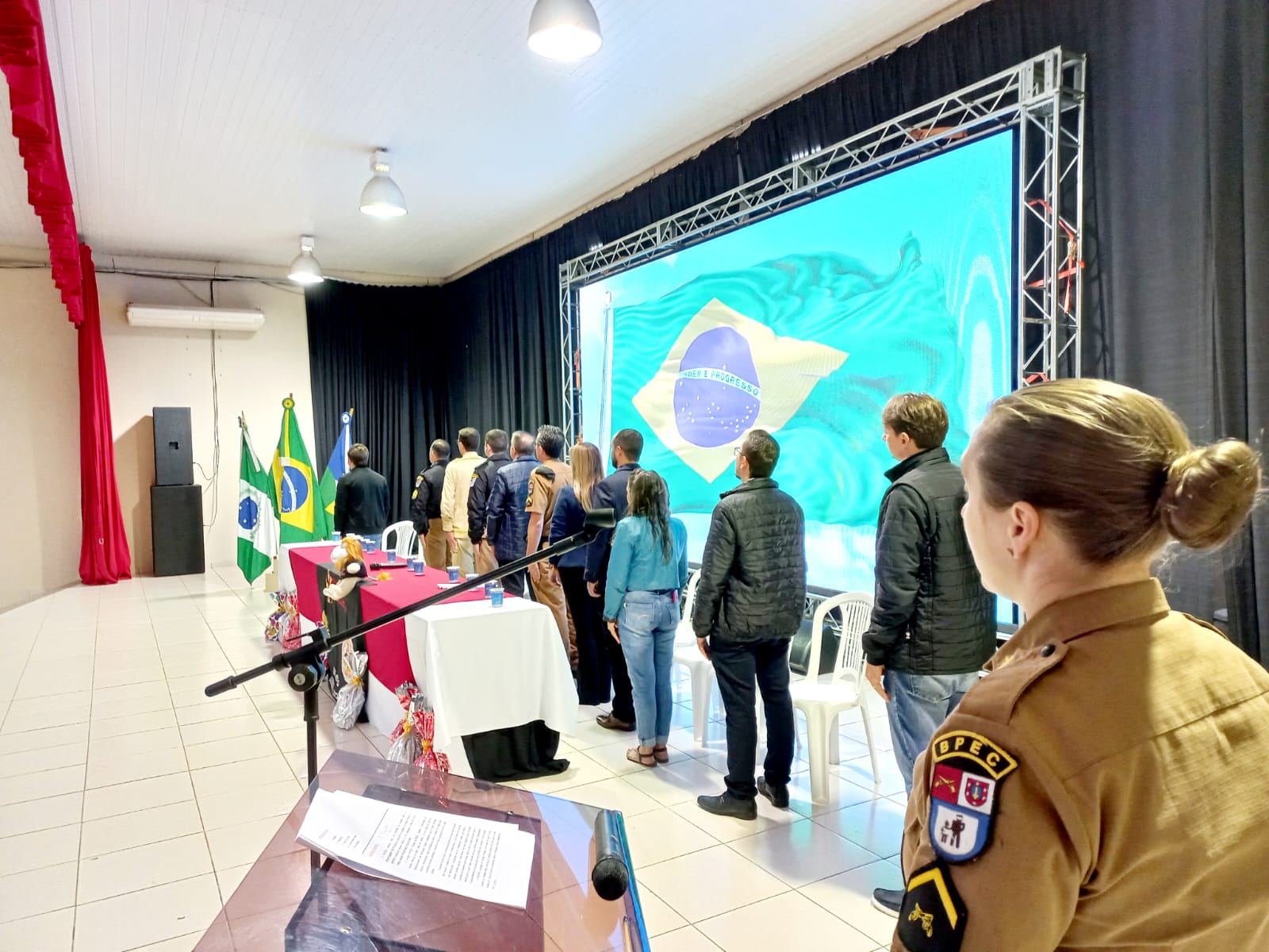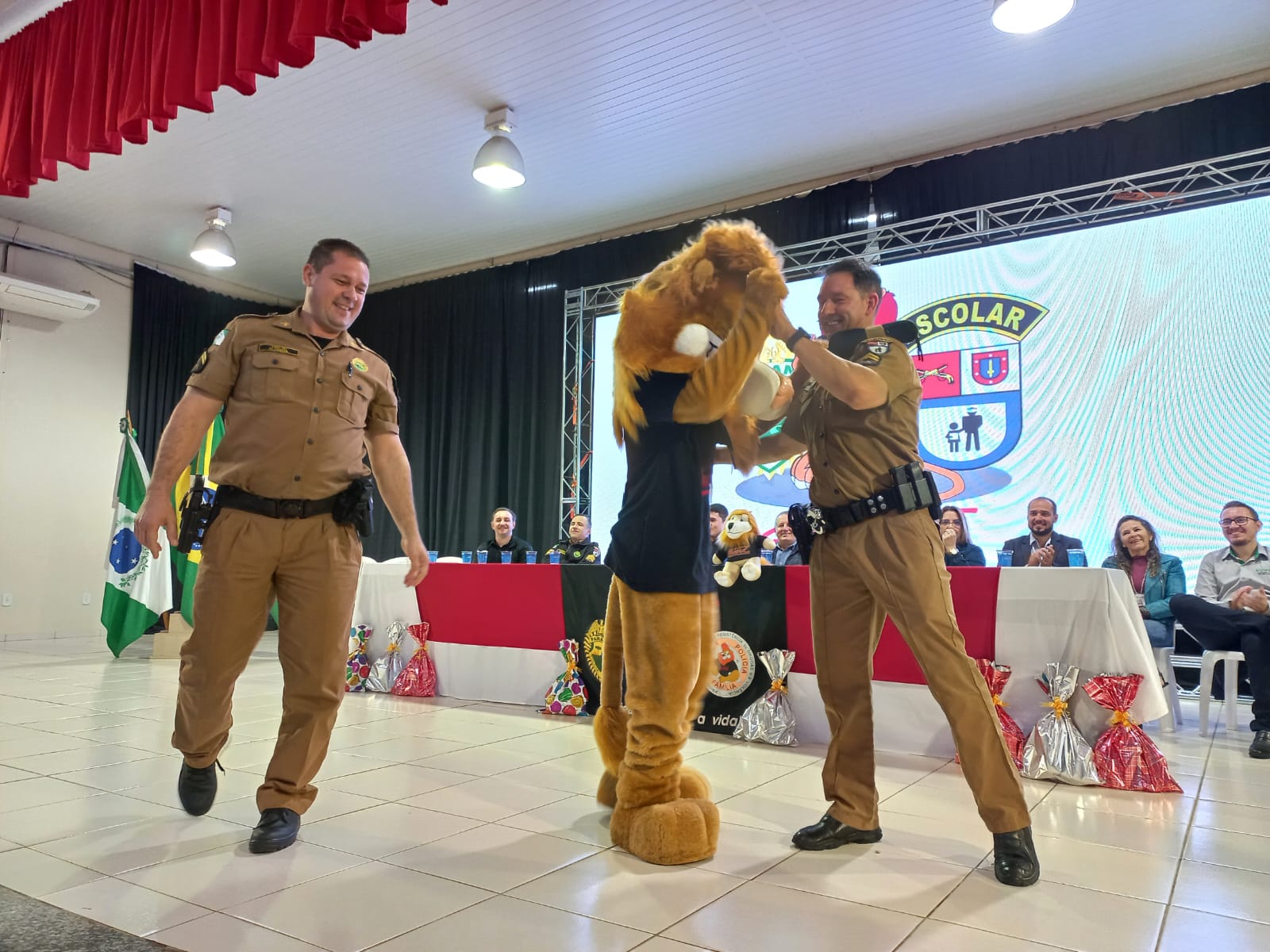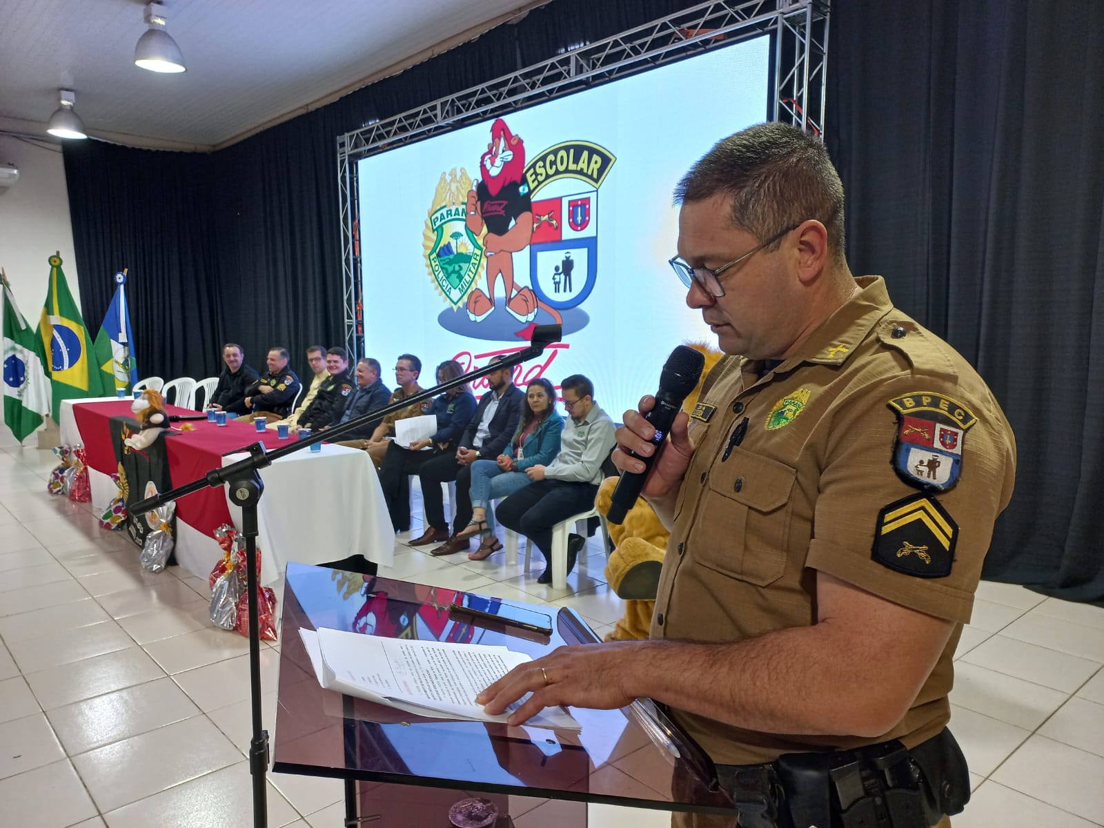 Aconteceu na manhã desta terça-feira (30/05), no Centro Cultural Monsenhor Cestílio José Miotto em Santa Izabel do Oeste, a formatura do Proerd 2023, para 140 alunos dos 5º anos das escolas da Rede Municipal de Ensino, da cidade e do interior do Município e da Rede Particular. O Centro Cultural ficou completamente lotado com a presença dos alunos, pais, autoridades, secretários e professores.