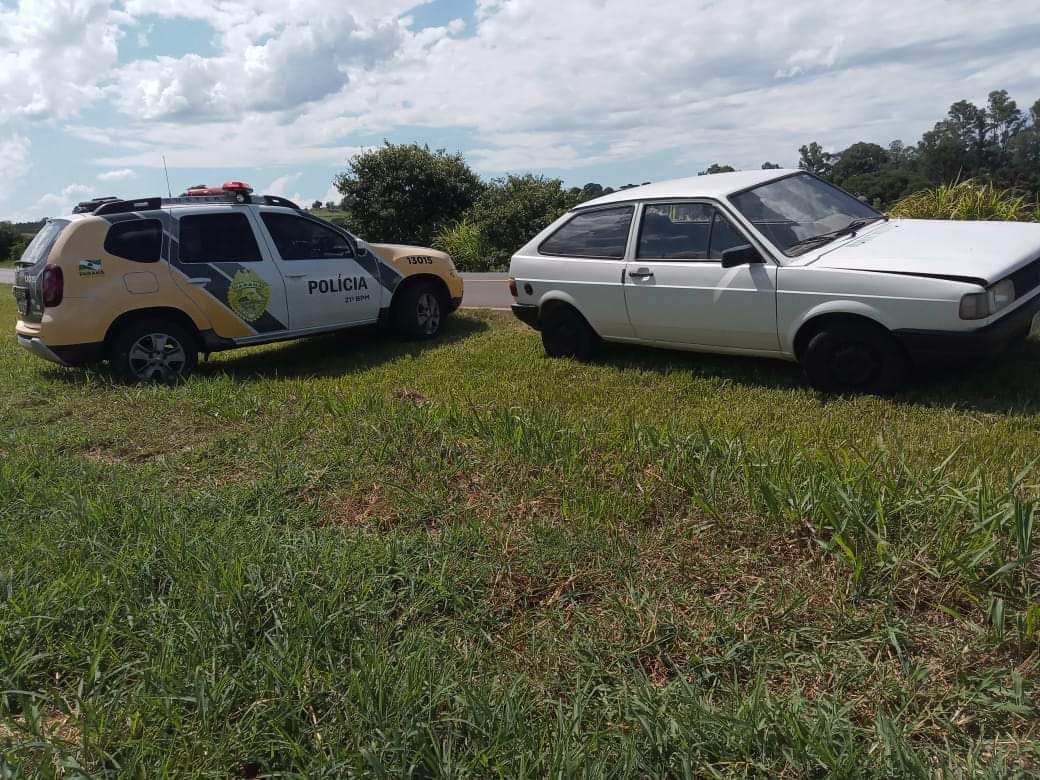 De posse das informações, iniciou-se as buscas sendo o veículo encontrado abandonado as margens da rodovia e após verificação, constatou-se ter registro de furto que teria ocorrido na madrugada de hoje em Ampére.