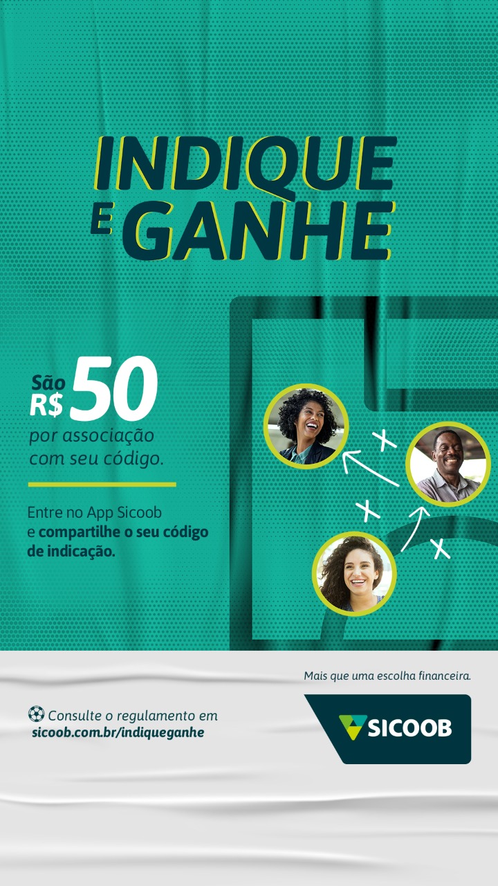 A agência Sicoob está com a promoção "Indique e Ganhe", a cada associação concluída com código de indicação feita no App Sicoob estará recebendo uma bonificação de R$50,00.