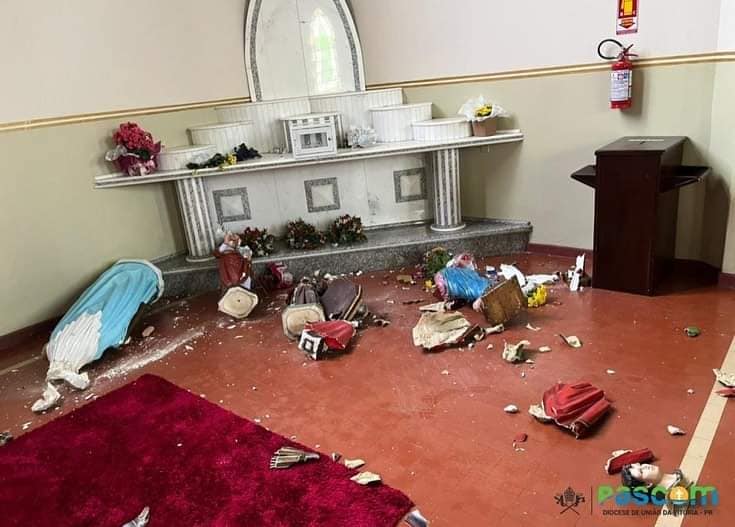 Um homem de 35 anos suspeito de invadir a Igreja Matriz de São Mateus do Sul, na região sul do Paraná, foi preso de acordo com a Polícia Militar (PM-PR). Segundo o boletim de ocorrência, ele quebrou 27 imagens sacras no local.