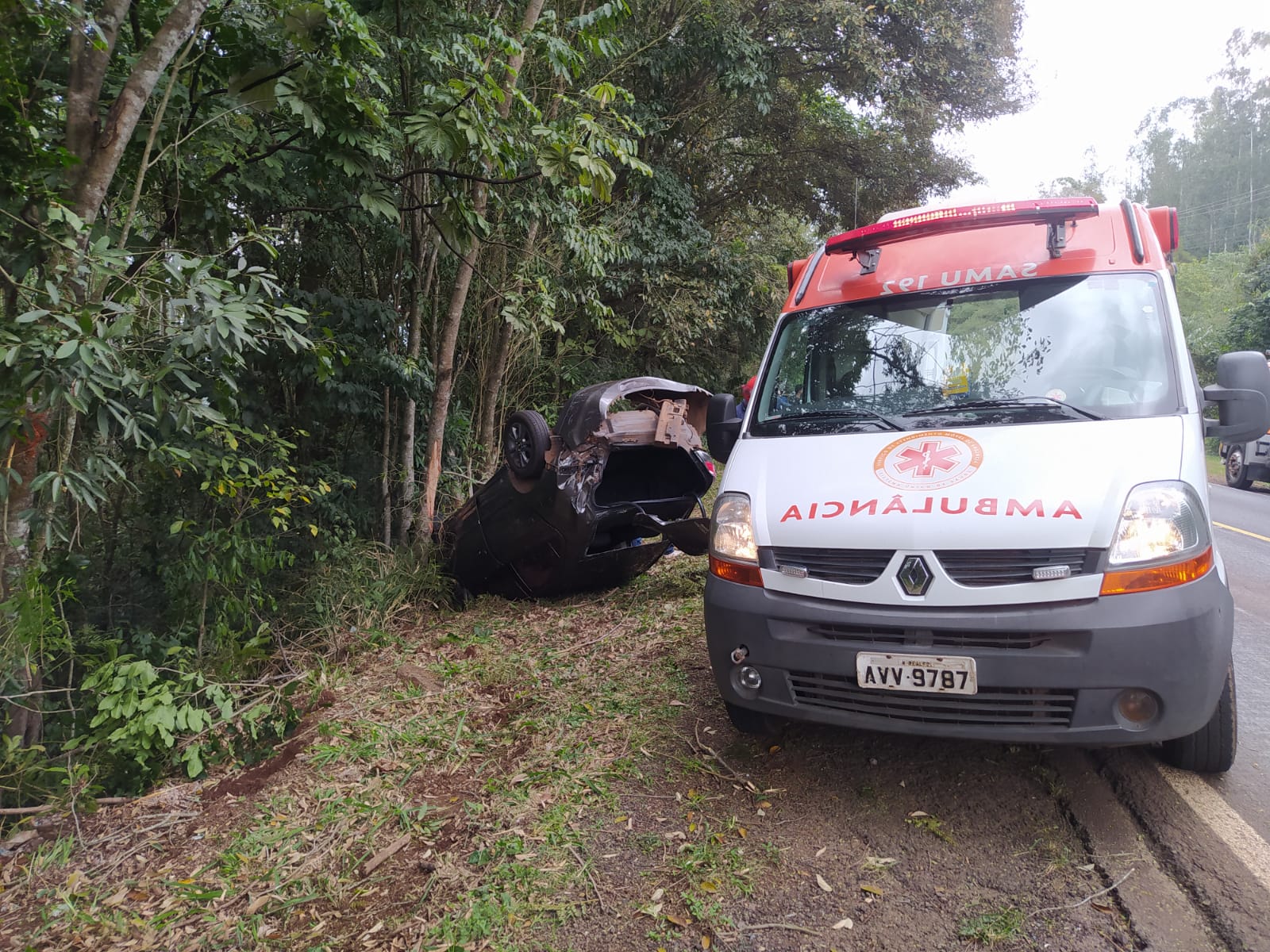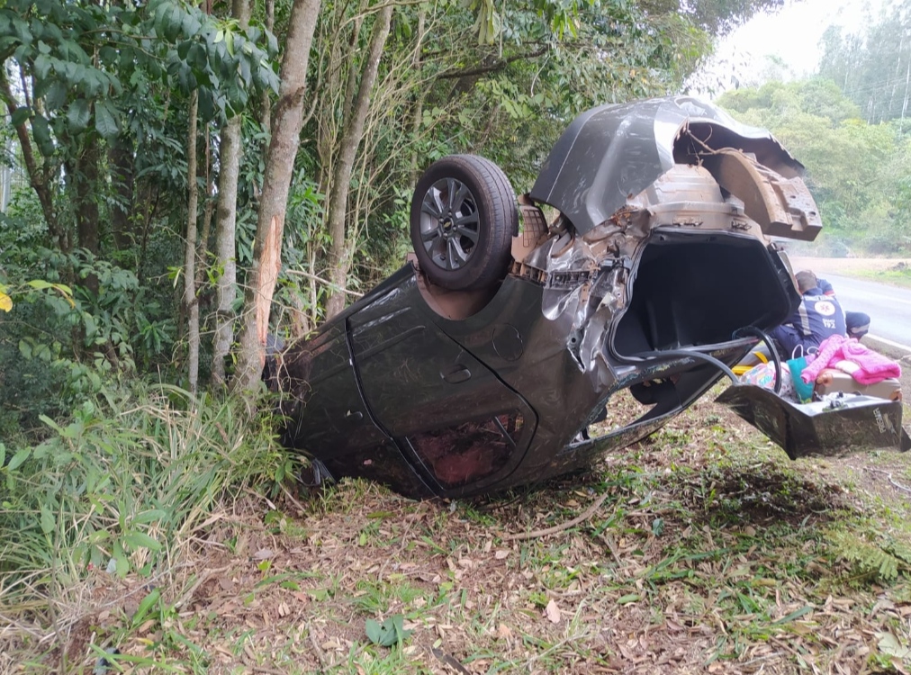 Veículo ocupado por mãe e filha capota na PR-281 em Realeza