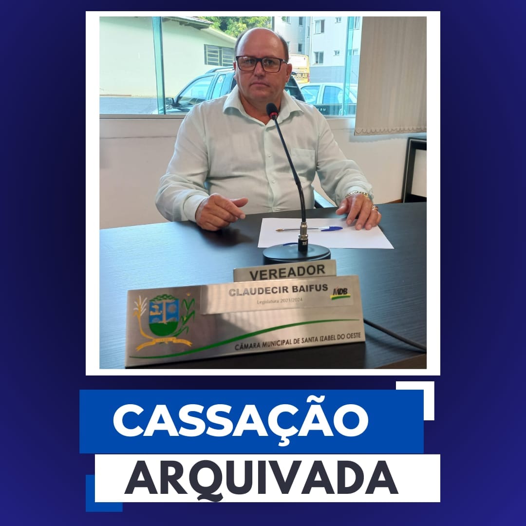 Com 07 votos contrários, a Câmara Municipal rejeitou com unanimidade o pedido de cassação do vereador Claudecir Baifus do partido MDB (Movimento Democrático Brasileiro), acusado de quebra de decoro parlamentar e Infração de modo incompatível com a dignidade da câmara durante Sessão Especial de Julgamento no Plenário da Câmara Municipal de vereadores de Santa Izabel do Oeste, nesta terça-feira (05/12).